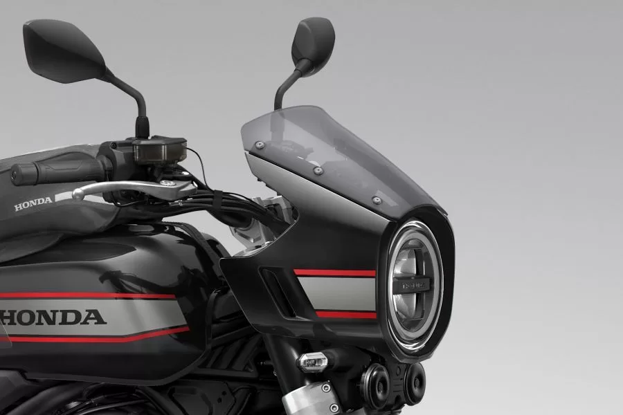 HONDA純正のヘッドライトカウルは、ビキニカウルデザインを採用しつつ、曲線を抑えたフラットな形状とすることで、CB1000Fのフロント周りをシャープに魅せれます。