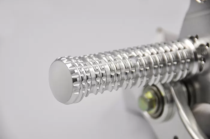そして、注目は新色「コントラスト」。アルマイト処理後に精密なカットを施すことで生まれる繊細なラインは、足元に加わるだけでマシン全体の印象をシャープに引き締めます。