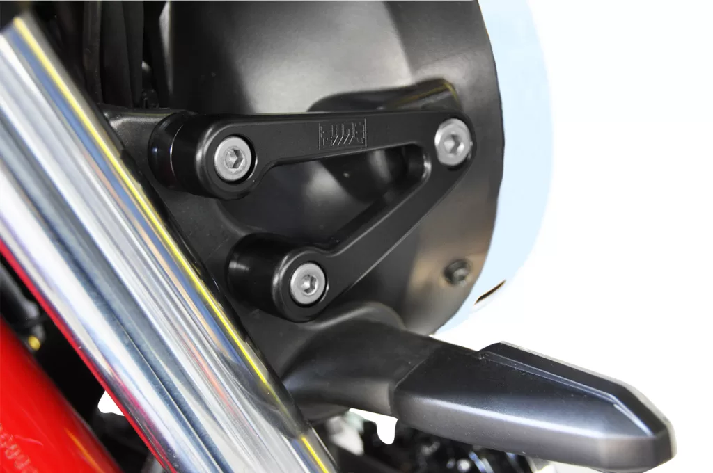 ベース部にはジュラルミンを取り入れ、フレームへの固定剛性を確保しつつ、不要な張り出しを抑えたコンパクト設計。見た目への影響も最小限です。