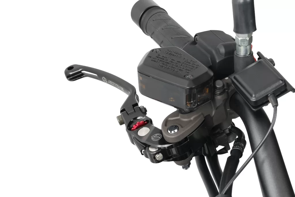 組み付け後のガタが少なく、レバーを真っ直ぐ引ける操作感は純正とは別物。そのうえ、ブレーキ側は1クリック2mm刻みで細かく調整でき、クラッチ側は無段階調整が可能です。