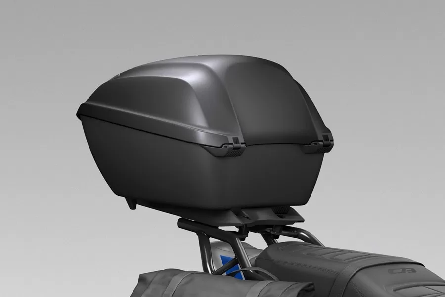 HONDA純正オプションで販売されている「リアキャリア」は、中央部がトップボックス取り付けスペースとなっており、別売りの「トップボックス取付ベース」と「トップボックス本体」を組み合わせて利用する製品です。