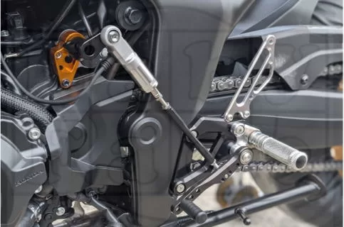 一般的なステップキットは、複数のリンクやロッドを介してシフト操作を伝えますが、このモデルはロッドを直接ペダルへ繋ぐ構造。