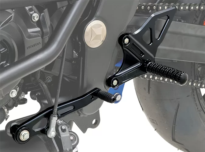 CB1000Fが持つネオクラシックな雰囲気を損なわないよう、2D加工を主体としたシンプルなデザインを採用し、アルミ削り出しならではの質感が、足元に高級感とメカニカルな存在感を与えてくれます。