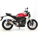 GPメガホンをベースにしたデザインでレーシーなスタイルで装着できるマフラー。CB250Rに装着するとストリートファイター色が濃くなって見えます
