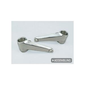 まずは、ヘッドライトステが純正よりも、シャープな形状で平行に伸びるタイプを採用。
