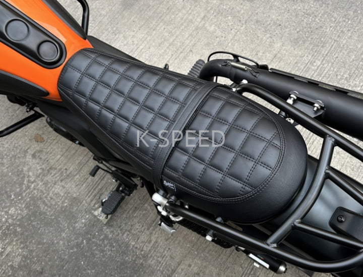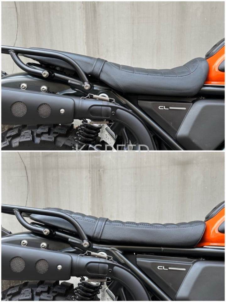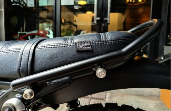 車体のラインに沿って高さをグッと抑えてあるので、後ろから見た時の一体感も抜群です。 パッセンジャーが掴みやすい安心感をしっかり確保しながら、スクランブラーらしいシュッとした見た目を邪魔しません。