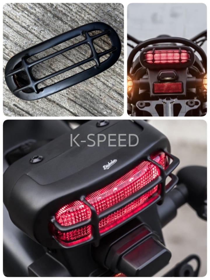 こちらも両面テープで固定するだけの簡単仕様。 これまでに紹介したライト系のガード類と組み合わせることで、前後隙のない「ブラックアウト・カスタム」が完成します。