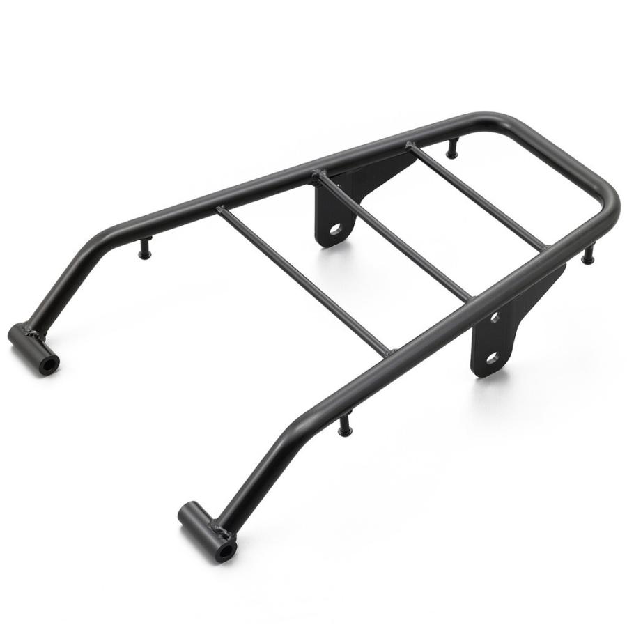 素材には強度と耐久性に優れたスチールを使用し、シンプルなブラックカラーでバイクに自然に馴染む外観です。最大積載量は5kg(BOX等の重量も含む)で、日帰りツーリングや街乗りでの軽装備に適しています。