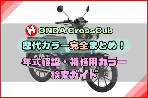 クロスカブで販売されてきた色を知りたい年式別にまとめました。中古車の年式確認や、補修用カラー調べに使える一覧ページです。