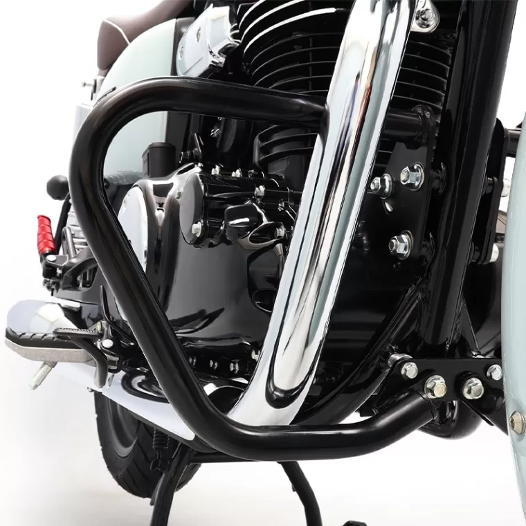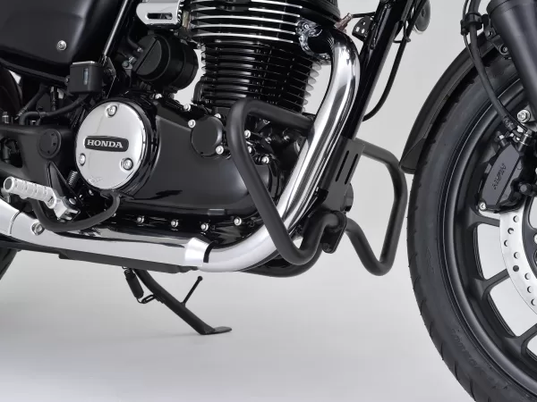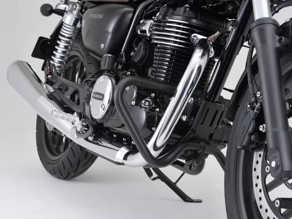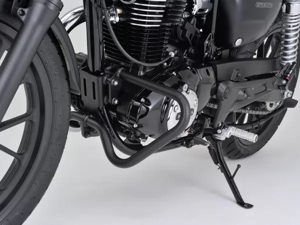 強度の高いスチールパイプ製で、ボルトオンで簡単に装着可能。ロワータイプならではのコンパクトな設計により、エンジンガード特有の武骨な印象を抑え、クラシカルなGB350Cのデザインを損ないません。