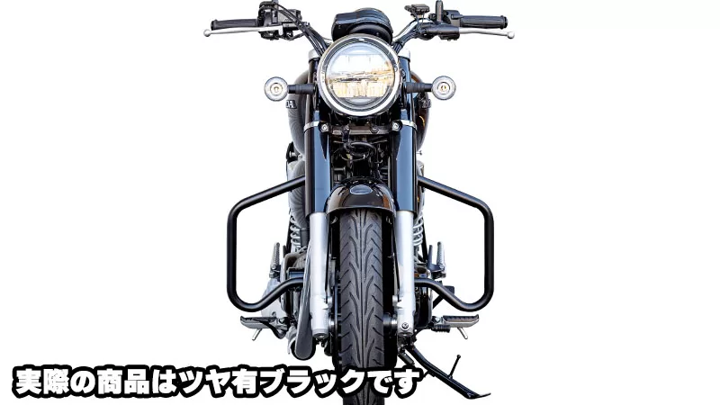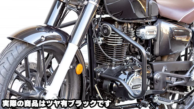 グロスブラック塗装で艶のある仕上がり。エンジンガードの存在感を活かしたカスタムを楽しみたい方に特におすすめです。