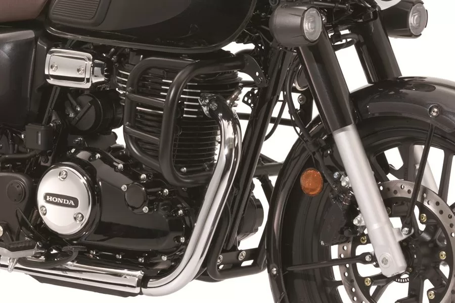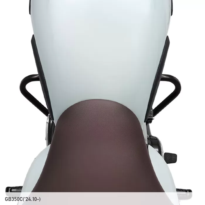 ラウンドスクエア形状は、クラシカルなスタイルに自然と寄り添うデザイン。最大幅631mmという幅広設計により、GB350Cの特徴である幅広なガソリンタンクを含めた車体上部をしっかり保護します。
