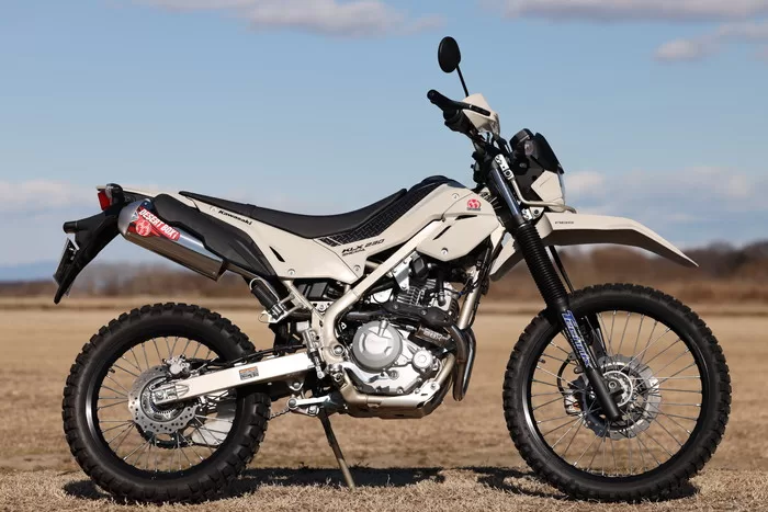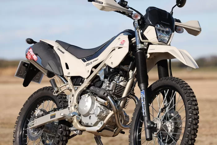 KLX230シリーズは、マイナーチェンジを経て全体的にシャープな外観へと変化し、より一層オフロードバイクらしいスタイルに仕上がっています。