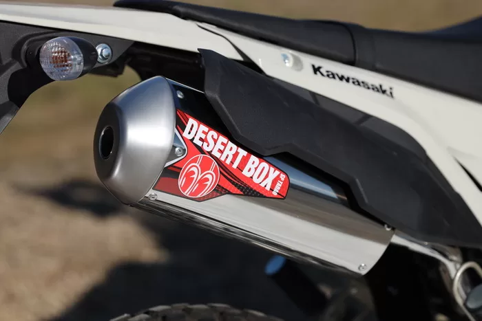 これまで忠男のサイレンサーといえばPOWER BOXが定番でしたが、KLX230系ではオフロード向けとしてDESERT BOXが新たな主力モデルとなります。