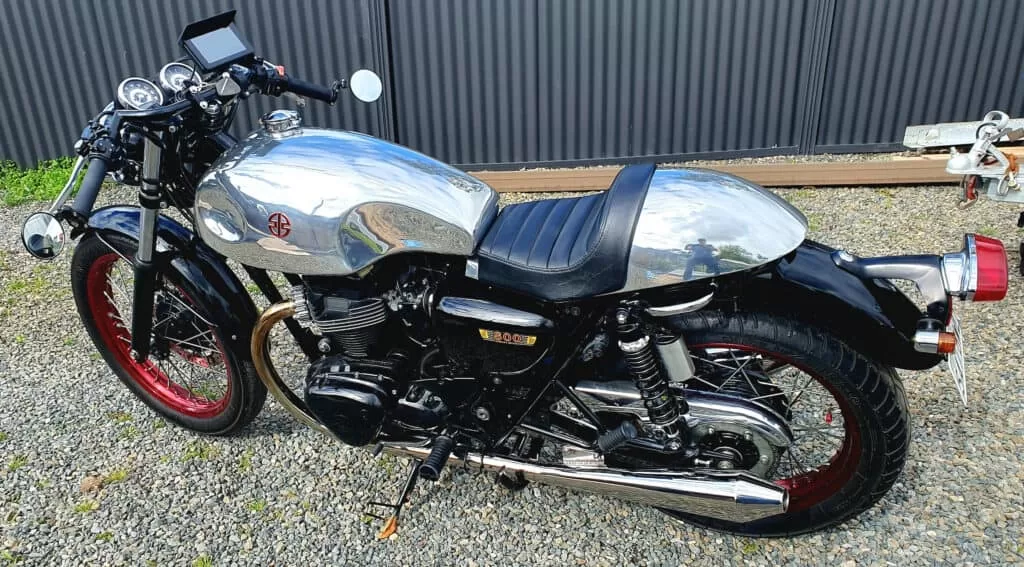 特にカフェレーサースタイルとの相性は抜群で、低く構えたハンドルやバックステップと組み合わせれば、よりレーシーな雰囲気を演出できます。