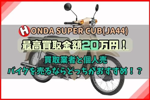 このページでは、スーパーカブ110(JA44)の実際の買取データと、個人売買(オークション)での落札事例を比較し、あなたに合った売却方法をわかりやすく紹介します。