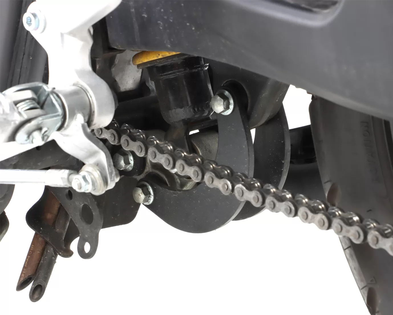 • 精悍なブラックアルマイト仕上げで、車体の足元をクールに引き締める